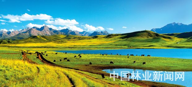 我国草原面积近60亿亩,综合覆被度达55.7%。图为祁连山东段冷龙岭北麓的大马营草原。 脱兴福摄(《森林与人类》杂志)