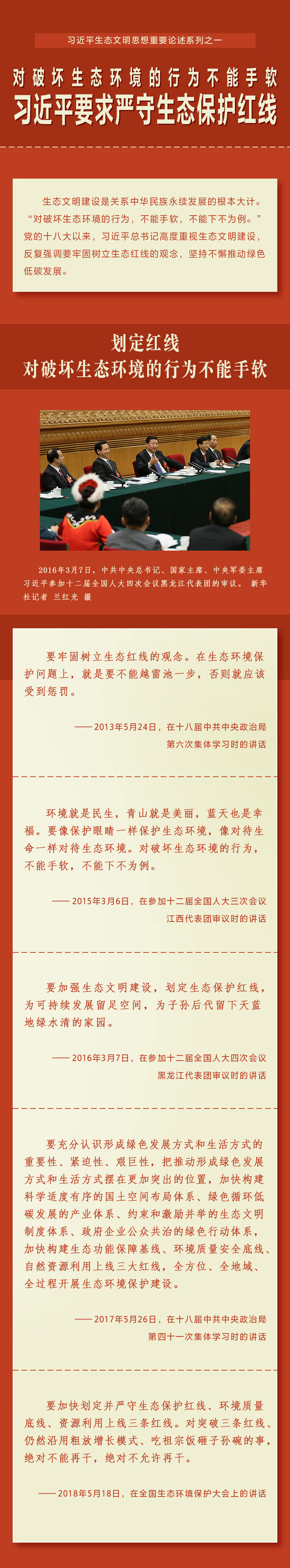 习近平要求严守生态保护红线:对破坏生态环境的行为不能手软
