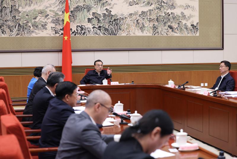 11月18日,中共中央政治局常委、国务院总理李克强在北京主持召开经济形势专家和企业家座谈会,分析经济形势,就做好下步经济工作听取意见建议。中共中央政治局常委、国务院副总理韩正出席。新华社记者 王晔 摄