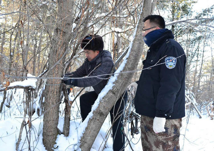 每年冬季降雪以后,是非法猎捕和贩卖野生动物案件的高发期。针对这一情况,临江林业局各林场林政人员与辖区派出所民警组成联合工作组,对辖区内野生动物活动频繁的重点区域进行了全方位巡查,对发现的狍子套、野猪套、野鸡夹套、兔子夹套等猎捕工具当场拆除。同时,联合工作组深入辖区居民区和村屯,对候鸟迁飞停歇地、迁飞通道及野生鸟类集群活动区进行巡护,加大粘鸟网的清理力度,并结合《森林法》《野生动物保护法》重点内容,通过张贴标语、发放宣传单、入户面对面讲解等多种形式对村民开展了法律法规相关知识的宣传教育,并呼吁林区居民群众自觉保护野生动物生存环境,不滥捕滥杀野生动物,不参与非法买卖野生动物等破坏生态资源的违法犯罪行为,切实增强林区群众的法律意识,营造了依法管护森林资源的良好氛围。
