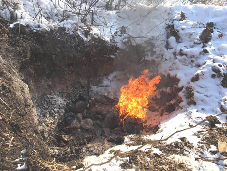 当天上午,在城郊结合部二支线,非法猎取的野生动物及其制品被集中进行无害化销毁处理。