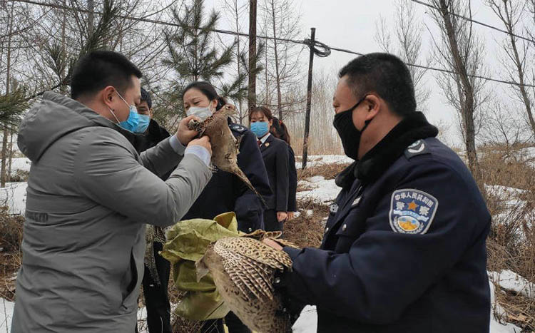 3月9日,临江林业局天然林保护中心资源管理处、林政稽查处联合临江森林公安分局、临江林区检察院、临江市林业局动物保护站人员组成联合行动组,将辖区内一居民家中无证驯养的野鸡放归大自然,切实加强野生动物保护力度。