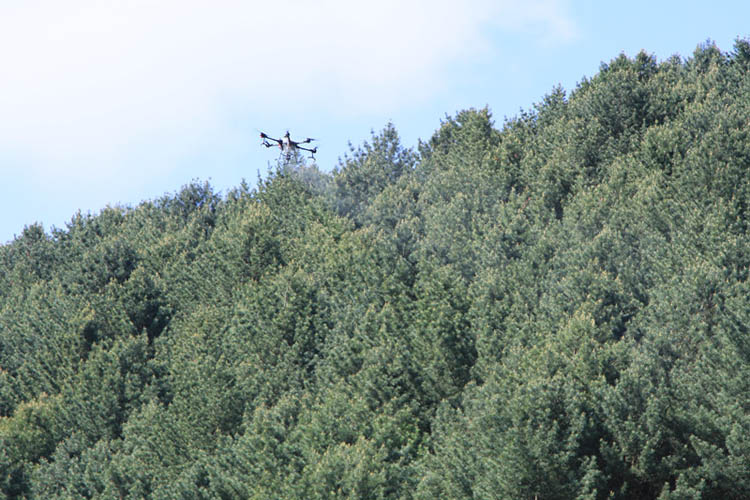 在接到开展防治试点工作通知后,临江林业局高度重视,认真组织,开展林分踏查,并根据红松林分布情况、山形地势及2019年红松球果害虫的监测结果,确定防治试点区域,制定临江林业局防治试点方案。森防检疫站工作人员按照方案设计,在闹枝林场、贾家营林场13个林班26个小班红松林内,共设置试验样地34块,防治试验面积2088亩,对照面积240亩。防治措施主要采取无人机喷施药剂防治加人工施放烟剂防治相结合,及人工投放红松梢斑螟啮小蜂和赤眼蜂生物防治的模式。