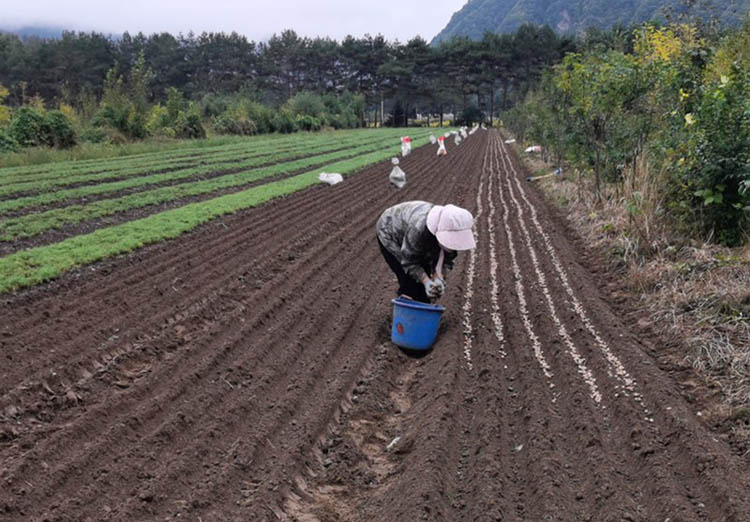 9月25日,圃地内涝情况改善后,工作人员开始整地做床,深翻圃地30cm,拣出草根石块,并利用硫酸亚铁对土壤进行消毒。准备工作完成后,组织人员利用条播方式播种蒙古栎。 经过两天的努力,3000余斤蒙古栎良种在四区、六区圃地全部播种完成,播种面积达四亩左右。 |