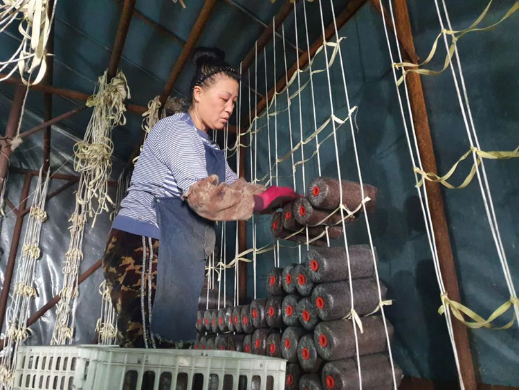 正式开工后,员工们分工协作,上料拌料、接段装框、蒸煮灭菌、上架子……随处都是忙碌的身影。目前,木耳生产工作正在有序进行,每天完成3万段的生产任务,预计20天左右完成全部任务。