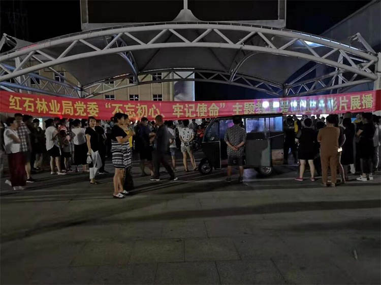 7月27日,红石林业局文化广场正中的一道鲜艳的条幅格外引人注目,条幅上一行金色大字映入眼帘“红石林业局党委“不忘初心、牢记使命”主题教育爱国主义电影展播”,条幅后高高拉起的老式银幕、摆放整齐的小凳子更是引起群众驻足围观。 晚7:30分,在一段关于健身知识的科教片之后,展播的正片《大会师》正式上演。《大会师》以红军一、二、四方面军波澜壮阔、血火硝烟的艰苦征程和艰难会合为创作蓝本,通过其传奇与坎坷并重的历史史诗,揭秘长征途中,红一、二、四方面军从合到分,从分到合,艰难北上,胜利会师的光辉历程。一幕幕逼真的场景、精彩的剧情展现了红军长征时期所遇到的各种艰难险阻,展现了红军老前辈坚定信仰跟党走、不怕艰难险阻、克服重重图难的伟大革命英雄主义精神。