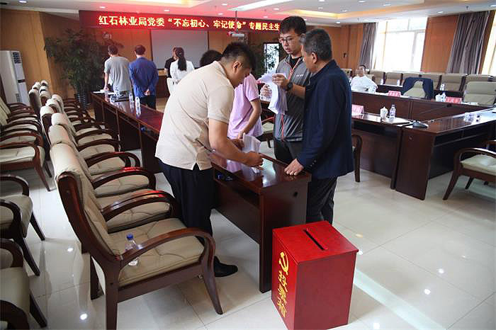 会议最后,与会人员对红石林业局主题教育开展情况进行测评投票,对主题教育开展情况作出客观公正的评价。