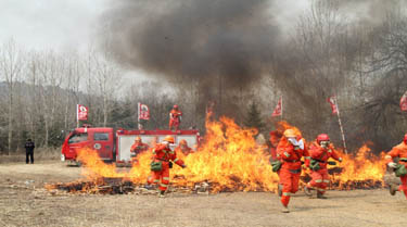 上午9时许,扑火前指下达演练命令,各参演单位接到扑火命令后快速反应,迅速出动。各扑火队采取分兵扑救与协同作战相结合的战术,使用风力灭火机、灭火水枪、水泵等机具,进行了安全、快速、高效、有序地扑救。演练过程中,各单位都能够按照《处置办法》的启动程序及规定的人员、装备快速到达演练地点,并按要求相继展开《处置办法》启动、队伍集结,行进信息报送、火场预判、指挥调度、实战扑打、紧急避险、清理火场、队伍归建等科目的演练。实战演练结束后,局专业化扑火队还进行了穿越火线避险科目演练,现场领导同其他队伍进行了观摩学习。