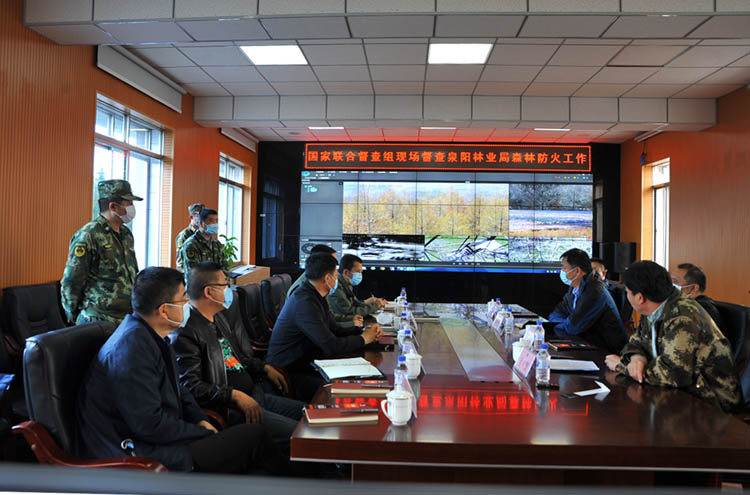 联合督查组在森林防火指挥中心听取了泉阳林业局森林防火工作情况汇报,观看了“森林眼”森林防火视频监测系统操作运行演示、省级森林消防专业队强行冲越火线避险等科目的避险自救模拟演练,查看了国家级储备库物资储备、灭火设备、扑火车辆、应急值守等情况;实地查看了泉水森林资源管护大队联防协议、防火宣传、“三员”值班、内业管理、半专业化扑火队建设、灭火机具库管理、重要路口卡点人员值守、入山人员情况记录、火源火种管控等防火关键环节情况。