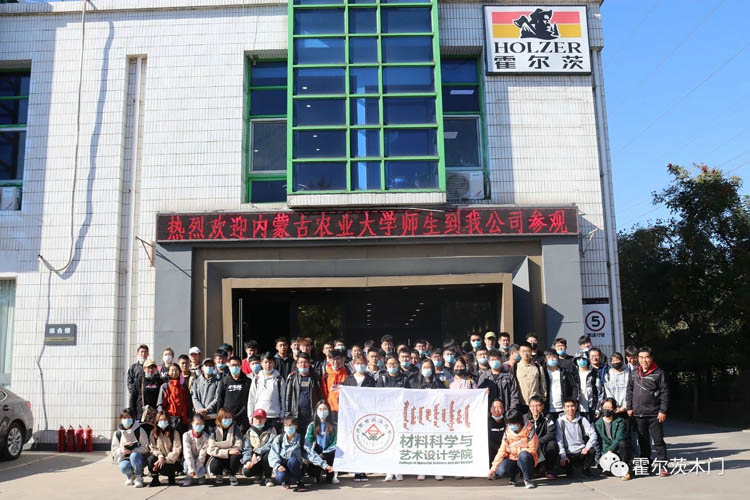 10月24日上午,霍尔茨木门迎来了内蒙古农业大学材料科学与艺术设计学院,木材科学与工程专业师生一行人参观学习。霍尔茨总经理赵崇联,副总经理魏运国,品牌部经理管玲超,北京一厂厂长韩磊,总经办法务经理黄镜澳,人事经理梁倩,往届毕业生代表物资管理部陈爽爽等人参加了本次活动并进行了座谈交流。