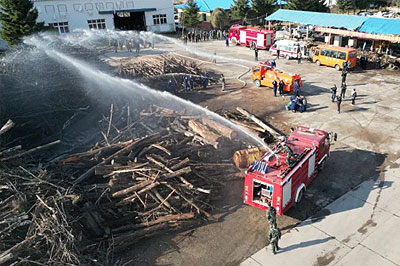 此次演练,模拟林副产品加工厂枝桠材存放区发生自燃,设置了启动应急预案、组织力量投送、火场指挥调度、各参战队伍联合扑救等多项内容,重点演示常规装备灭火、移动水泵灭火、受伤人员救护、火灾现场交通管制等四项应急处置战术行动。