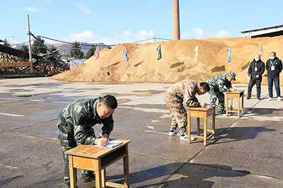 消防应急演练结束后,贮木场、林副产品加工厂、森林防火指挥部办公室、物资供销处、红石林场、帽山林场六家单位近百名男女选手共同参加了公司“安康杯”消防演练技能竞赛。竞赛设置了60米安全知识答题、50米灭火器灭火、100米友谊接力赛、集体消防实战演练、移动消防泵灭火五个竞赛项目。