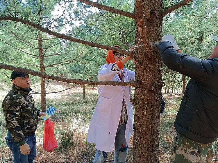 吉林省林科院到三岔子林业有限公司开展红松激素促花结实试验