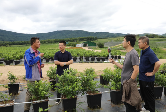 在吉林森工基质蓝莓产业园,对基质蓝莓发展前景、产业规模和智慧农业的技术要求、管理模式等情况进行全面了解。对红石林业公司在基质蓝莓产业园建设过程中,举全公司之力,仅用121天时间,就完成占地600亩基地建设所展现出的“红林速度”表示赞赏。