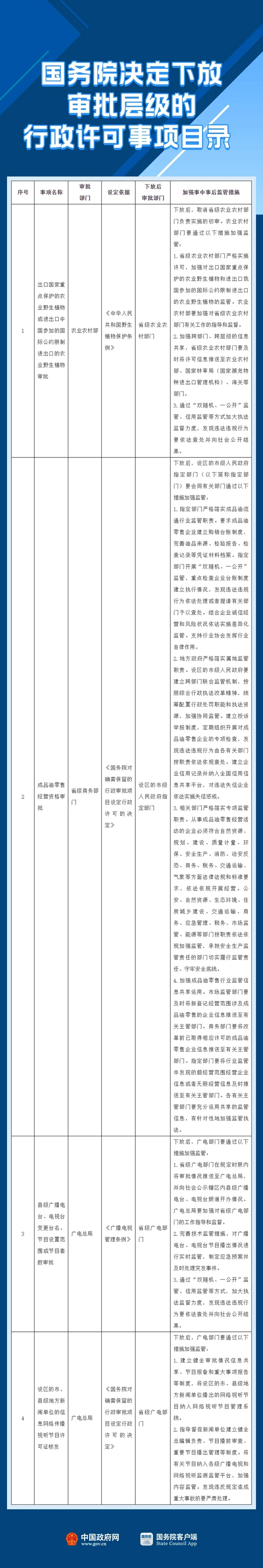 国务院再取消和下放一批行政许可事项(附详细目录)