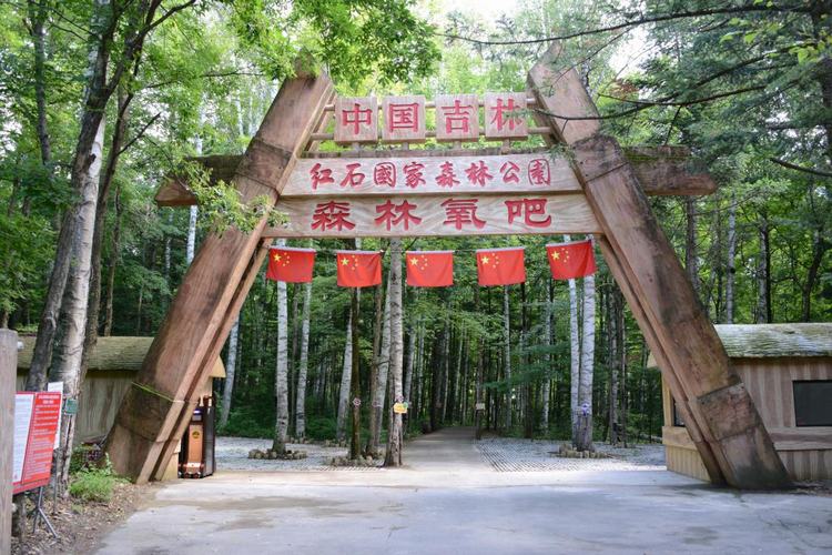 注:森林游吧:位于红石国家森林公园红(红石林业局)白(白山电站)旅游线的17公里处,坐落于一片茫茫的绿海之中,由于这里苍松、白桦、红叶相间,色彩纷呈,景致壮观,又有“三原色森林氧吧”之美誉。