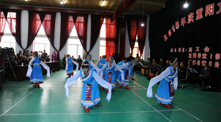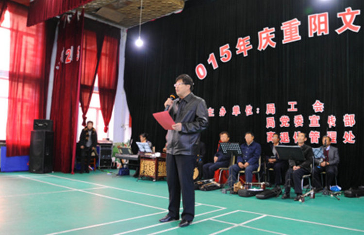 为弘扬中华民族敬老爱老传统美德,丰富离退休老同志精神文化生活,10月21日,在重阳节到来之际,泉阳林业局在职工培训中心二楼举办了“2015庆重阳文艺联欢会”。泉阳林业局党委副书记、工会主席王烈举及局工会、纪委、组织部、宣传部等部门负责人与离退休老同志欢聚一堂,共同观看了演出。 离退休管理处党总支书记王德利首先致开幕辞。