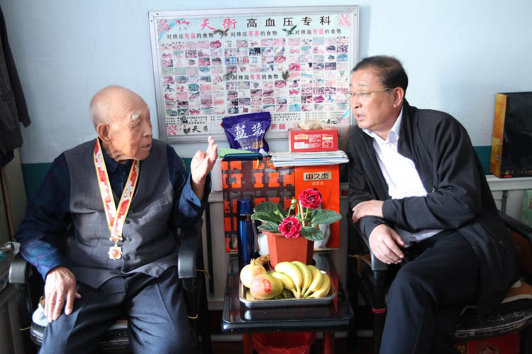 钟万里在王玉昌家中亲切地与老人拉家常,询问生活起居和身体状况。老人激动地说,共产党给了我今天幸福美好的生活,感谢党的温暖、感谢局领导的关怀。