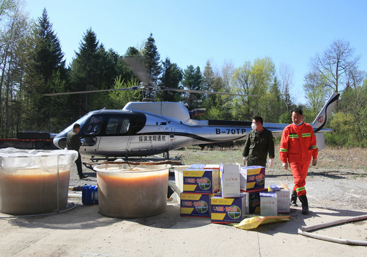 此次“飞防”是临江林业局首次利用直升机喷药的方式开展防治松毛虫作业。直升机载药量为800公斤,飞机防治喷药幅度50—70米,当日实施“飞防”作业9架次,每个架次喷药面积在150公顷以上,防治面积1200公顷。飞机喷施的药剂为绿色无公害的植物源制剂——1.2%苦参烟碱乳油。通过实地监测药效,防治率达到了85%以上。当飞机均匀地将药物喷施在树冠后,正在取食的松毛虫纷纷中毒落地,防治效果非常明显。