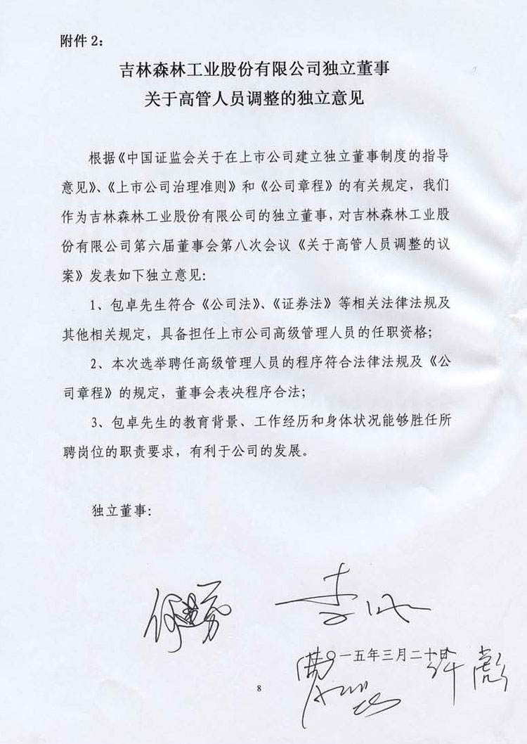 吉林森林工业股份有限公司第六届监事会第八次会议决议公告